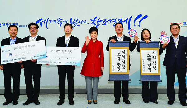 지난해 9월 박근혜 당시 대통령(가운데)이 포항창조경제혁신센터를 방문한 모습.[동아일보]고용 창출과 4차 산업혁명을 한번에 해결할 것이라며 만능 유망주 대접을 받던 스타트업이 위기에 처했다. 정재계의 집중적인 지원이 시작된 지난 정…