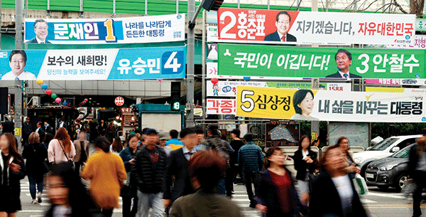 19대 대선 공식 선거운동이 시작된 4월 17일 각 당 후보들은 전국 곳곳에서 유세를 펼쳤다. 대전 문화의거리를 방문한 더불어민주당 문재인 후보, 대전 한 전통시장을 찾은 자유한국당 홍준표 후보, 광주 5·18민주광장에 선 국민의당…