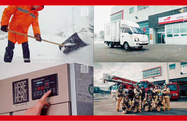 소방관을 주인공으로 한 동영상 ‘영웅, 여기에’ 화면들. “화재 출동! 화재 출동! 비상벨이 울리면 가슴이 쿵쾅대고 그 짧은 시간 사이에 엄청나게 많은 생각을 하면서 차에 탑승하는 거죠. 항상 긴장감이 있습니다.” 국민의 일상을 지…
