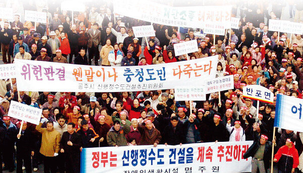 2004년 10월 헌법재판소가 ‘신행정수도의 건설을 위한 특별조치법’을 위헌결정한 데 대해 항의하는 시위대.‘정치의 사법화(judicialization of politics)’란 국가의 주요한 정책결정이 국회 등을 통한 정치 과정이…