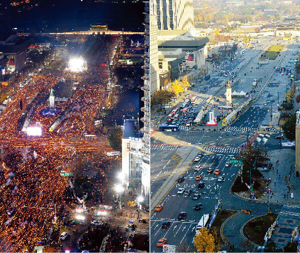 11월 19일 또 한 번의 토요일, 서울 광화문광장. 이날도 어김없이 60만 촛불(경찰 추산 17만 명)이 모였다. 집회 양상도 4주 전 처음과 다르지 않았다. 여느 때와 마찬가지로 폭력사태는 없었다. 오히려 ‘박근혜 퇴진’을 주제…