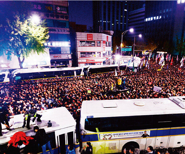 11월 12일 오후 서울 광화문광장. 2시부터 모이기 시작한 인파는 5시가 되자 광화문광장과 서울광장은 물론, 두 광장을 잇는 세종대로까지 꽉 메웠다. 집회 주최 측은 100만 명이 모였다고 추산했지만(경찰 추산 26만 명), 기자…