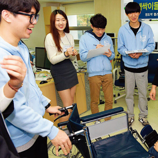 고등학교와 대학의 봉사활동 동아리 학생들이 휠체어에 앉아 환자 체험을 하며 치매 봉사를 배우는 모습. [사진 제공·순천향대]‘학교생활 중 배려, 나눔, 협력, 갈등 관리 등을 실천한 사례를 들고, 그 과정을 통해 배우고 느낀 점을 …