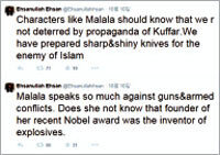 올해 노벨평화상 공동 수상자로 선정된 파키스탄의 소녀 인권운동가 말랄라 유사프자이(17)가 수상 발표 직후 과거 자신을 총으로 쏜 탈레반으로부터 살해 위협을 받았다. 10월 10일(현지시간) 파키스탄탈레반(TTP)의 강경 분파 ‘T…