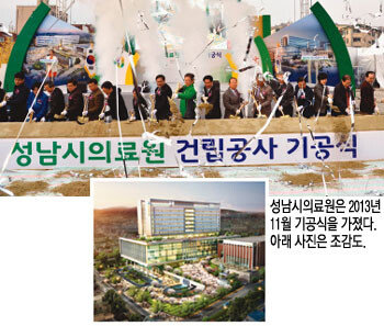 경기 성남시 태평동 옛 성남시청사 땅에 들어설 성남시의료원은 전국 최초로 주민 발의에 의해 시작돼 10년 만에 결실을 맺은 성남시 최대 숙원사업이다. 이재명 성남시장이 6·4 전국동시지방선거 당시 의료원 건설공사 현장에서 출마 선언…