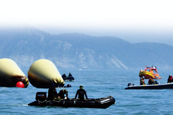 잠수사는 등에 잠수장비를 메고 앉아서 오리걸음을 하거나 엎드려 기는 것처럼 조금씩 들어간다. 통로 높이는 겨우 1.2m. 침몰한 세월호 선체가 좌현 쪽으로 90도 가까이 넘어져 좌현 쪽은 바닥이 됐고, 우현 쪽은 천장이 됐다. 원래…