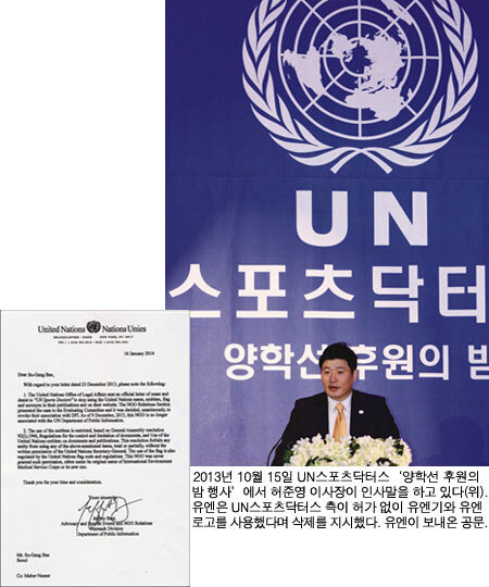 유엔 공보국(DPI) 경제사회국(DESA) 소속 NGO(비정부기구)라고 주장한 스포츠닥터스(이사장 허준영 한국마이팜 회장)가 유엔으로부터 등록 NGO 자격을 박탈당한 것으로 ‘주간동아’ 취재 결과 확인됐다. 유엔 DPI는 최근 ‘주…