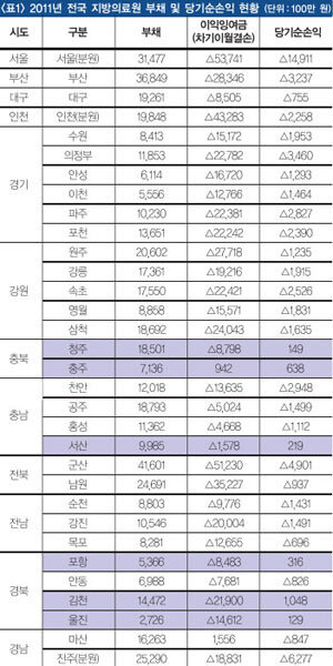 지방의료원 위기는 비단 경남 진주의료원만의 문제가 아니다. 2013년 4월 현재 전국 지방의료원은 모두 34개소. 서울, 부산, 대구, 인천 등 대도시를 비롯해 전국 도(道)별로 시·군 단위에 산재해 있다. 만성 적자에 허덕이는 건…