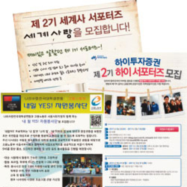 대학생 대외활동의 인기가 하늘을 찌를 듯하다. 최근 현대자동차그룹의 해외 봉사 프로그램에 지원한 사람이 1만5000명을 넘었고, KB국민은행이 운영하는 대학생 홍보대사 프로그램은 매회 경쟁률이 40대 1을 넘기 일쑤다. 문화체육관광…