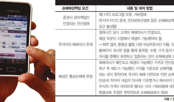 #1 개인투자자 A(33)씨는 올 2월 B증권사 모바일트레이딩시스템(MTS)을 통해 주식거래를 하던 중 C종목을 3만3700원에 매도하려고 했다. 하지만 MTS에 갑작스레 전산장애가 일어나 ‘먹통’이 된 탓에 제때 매도 주문을 내지…