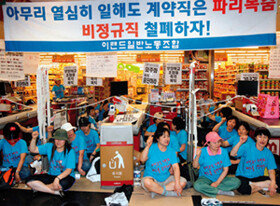 7월1일부터 시행된 비정규직 노동자 보호법이 노사 갈등을 확산시키고 있다. 이랜드그룹 계열사 홈에버와 뉴코아 노조원들은 7월12일 현재 13일째 매장 점거 농성(사진)을 하고 있다. 대부분 여성이고 주부인 노조원의 요구사항은 △비정…