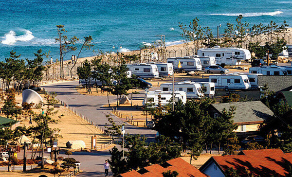 국제적 시설기준에 맞춰 조성한 국내 최초의 오토캠핑장으로 2002년 세계캠핑캐라바닝 대회를 연 곳이다. 그런 만큼 시설 면에서 완벽에 가까운 수준을 자랑한다. 망상오토캠핑리조트에서 자동차 전문 캠핑장으로 구분되는 곳은 리조트 진입로…