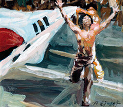 1987년 6월 이한열 열사 장례식 행렬의 선두에 대형 열사도를 그려 앞세운 화가가 있다. 노숙자 문제가 사회문제로 부각되기 전 ‘부랑아’ 연작을 그렸고, 기타를 튕기며 하모니카를 불고 있는 70년대식 캐릭터를 등장시켜 ‘분홍’ 연…