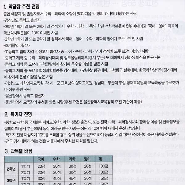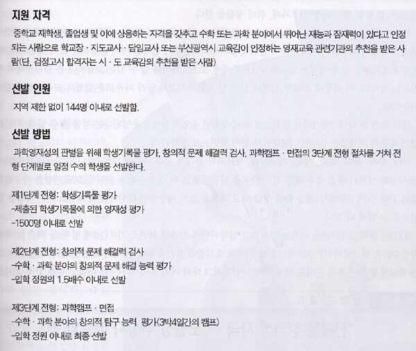 과학영재학교 ●www.bsa.hs.kr ●051-897-0006 ‘학급 정원 18명. 전 과목 영어 강의. 1년 예산 60억원. 1학년생 전원 국비 해외연수. 교사의 44%가 박사 학위 소지자.’부산 부산진구 당감동에 있는 과학영…