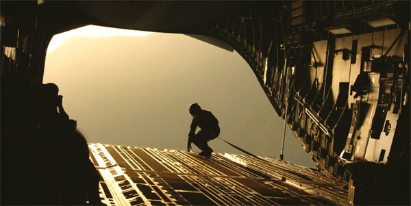 세계에서 두 번째로 큰 수송기 C-17의 내부는 정말 넓었다. 천장이 높은 창고 같다고나 할까. 여객기라면 상하층으로 객실을 만들 수 있을 것이다. 가파른 계단을 통해 올라간 조종실에는 4개의 좌석이 있었다. 앞의 두 좌석은 조종사…
