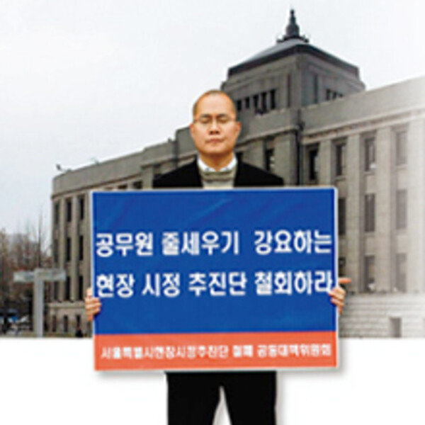 공무원 퇴출제에 대한 공무원들의 반발이 거세다. 서울시 공무원을 대상으로 한 ‘3% 살생부’가 마감된 3월15일 오후, 서울시청 서소문 별관에서는 서울시공무원노조 주최로 ‘현장시정추진단 철폐 투쟁선포식’이 열렸다. 이 자리에선 노조…