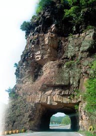 빨간 바위에 터널 뚫어 왕래
