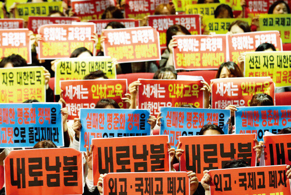외고·국제고 학부모들, 일반고 전환 반대 시위