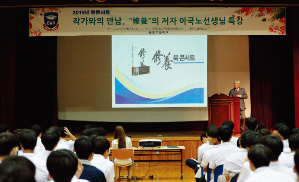 청소년 교양서 ‘수양’의 저자 이국노 한국예도문화장학체육재단 이사장의 북 콘서트가 9월 4일 오후 경기 수원시에 위치한 동원고에서 열렸다. 이번 북 콘서트는 이견희 교장, 정강현 교감을 비롯한 교직원들과 1학년 재학생 350여 명이…