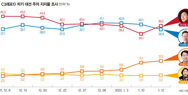 더불어민주당(민주당) 이재명 대선 후보와 국민의힘 윤석열 대선 후보가 다시 오차범위 내에서 접전을 벌이고 있다. 윤 후보가 선거대책위원회(선대위) 해체 등을 통해 국민의힘 당내 분란을 수습한 이후 지지층이 재결집한 결과지만, 전문가…