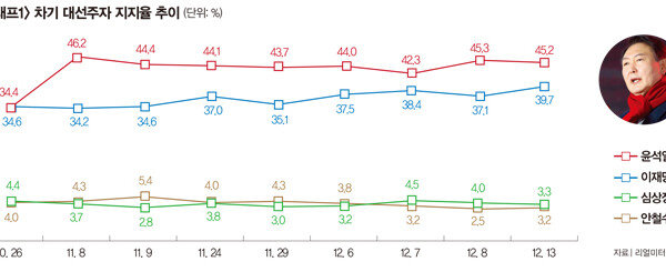 국민의힘 윤석열 대선후보의 모멘텀 전환은 나타나지 않았다. 윤 후보는 12월 3일 이준석 당대표와 ‘울산 회동’을 가지며 당내 갈등을 수습했고 곧바로 김종인 총괄선대위원장을 임명했다. 선거대책위원회(선대위) 개편 직후 실시한 여론조…