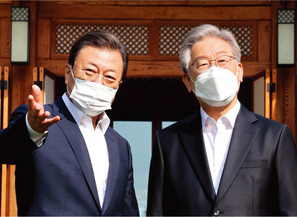 일부 정치 전문가는 20대 대선 키워드로 ‘문재명’(문재인+이재명)을 꼽는다. ‘이명박근혜’(이명박+박근혜)와 비교해보라는 취지다. 임기 말 이명박(MB) 전 대통령은 지지율에서 고전을 면치 못했다. 당시 여당 새누리당(현 국민의힘…