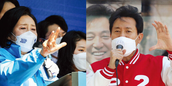 4·7 서울시장 보궐선거에서 국민의힘 오세훈 후보가 더불어민주당 박영선 후보를 여유 있게 앞선다는 여론조사 결과가 나왔다. 여론조사 전문기관 엠브레인퍼블릭이 3월 26~27일 서울 거주 만 18세 이상 남녀 800명을 대상으로 조사…