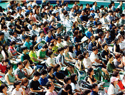학교 앞 사후면세점 피켓 든 엄마들