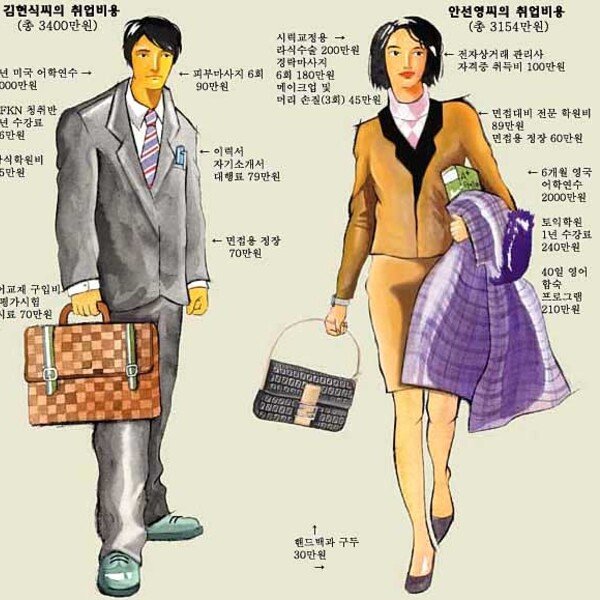 6개월 영국 어학연수 2000만원, 40일 영어 합숙 프로그램 210만원, 시력교정용 라식수술 200만원, 경락마사지 6회 180만원, 전자상거래 관리사 자격증 취득 100만원, 면접 대비 전문 학원비 89만원. 올해 초 서울 모여…
