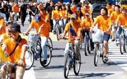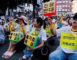 ”만수대 언덕 김일성 동상의 목에 밧줄을 거는 그날까지 더욱 결연한 자세로 김정일 타도 투쟁에 나서자! 북한 민중의 자유, 해방, 민주주의 만세!” 8월14일 서울 도심에서 북한 인권문제에 대한 관심을 촉구하는 자전거 행진을 벌인 …