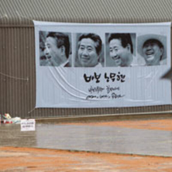 5월 18일 오전 김해국제공항. 막 착륙한 비행기 창밖으로 빗물이 아롱거린다. 김해 시내를 가로질러 봉하마을로 향하는 동안 조금씩 굵어지던 빗줄기는 도착 즈음 장대비로 변했다. 그럼에도 마을 주차장은 각종 번호판을 단 대형 관광버스…