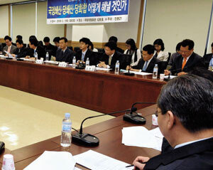 11월26일 아침 서울 여의도 국회의원회관 125호실에 한나라당 의원들이 속속 도착했다. 개혁 성향 초선 의원들의 모임인 ‘민본21’이 정책 현안을 토론하기 위해 정례적으로 여는 ‘목요조찬’에 참석하기 위해서였다. 참석자들의 표정은…