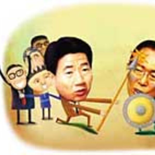 민주당 노무현 대통령 후보는 8월8일 재보선 결과가 나쁘면 후보 사퇴의 위기에 몰릴지 모른다. 반대로 한나라당 역시 패배하면 ‘부잣집의 뒷문’이 활짝 열리는 격이 된다. 한나라당은 이것저것 계산하지 않고 일찌감치 ‘압승’ 전략을 세…