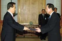 8월23일 장대환 국무총리 서리가 박관용 국회의장을 예방, “어려운 시험을 앞두고 입법부 수장께 인사를 왔다”며 도움을 요청했다. 옆에서 듣고 있던 의장실 한 인사는 “시험을 앞둔 수험생이 시험 감독관을 찾아와 ‘봐달라’고 하는 것…