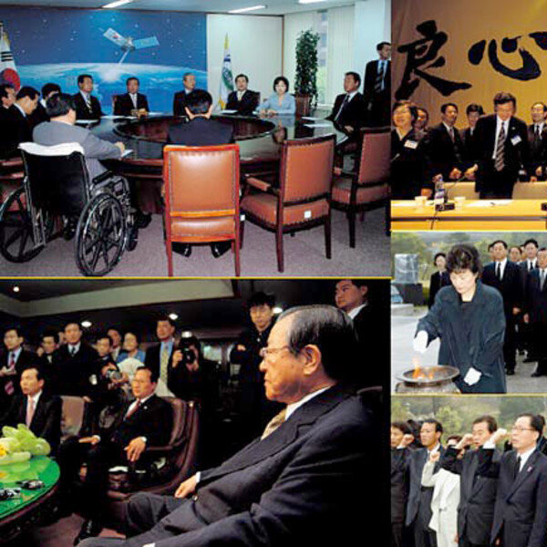 4·19혁명기념일, 종일 내린 비로 갈라터진 대지는 한껏 물기를 머금었다.여야는 이날 총선 뒤 첫 공식행사를 열었다. 열린우리당의 자축마당에는 웃음소리가 가득했다. 국립묘지를 찾은 한나라당 당선자와 모란공원 전태일 열사 묘를 참배한…