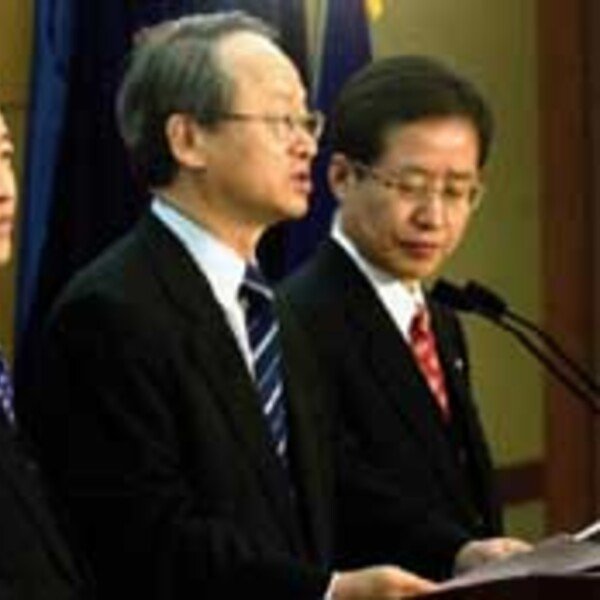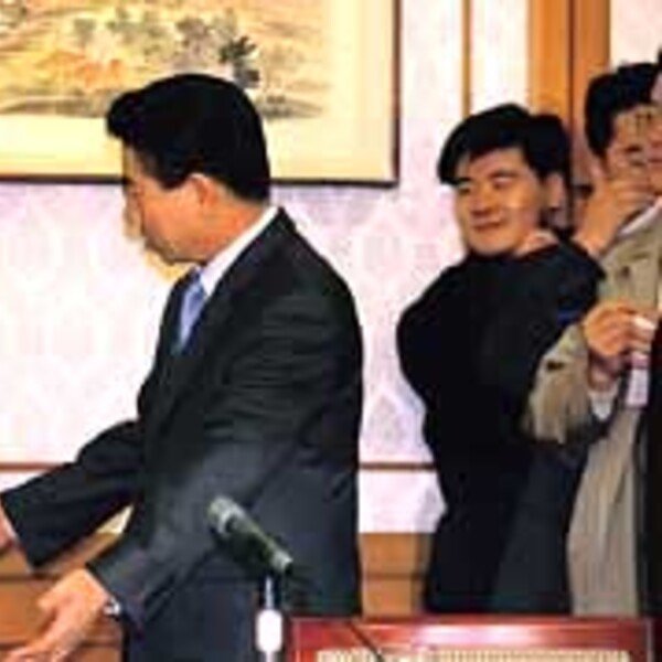 11월3일 16대 대통령 선출을 위한 첫 TV 합동토론회. 왼쪽부터 노무현, 권영길, 이회창 후보 순으로 반원형을 그리며 좌석이 배치됐고 그 순서대로 기조연설이 시작됐다. 노무현, 권영길 두 후보는 “존경하는 국민 여러분”으로, 이…
