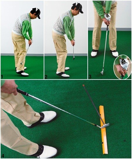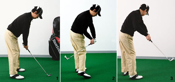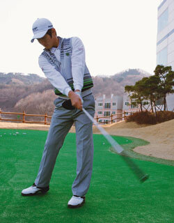 양발은 붙이고 양팔은 뿌려주고… 골프채 ‘목’잡고 스윙하라