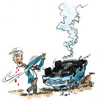 못 말리는 골프광, 사고 차에서 나오며 ‘빈 스윙’