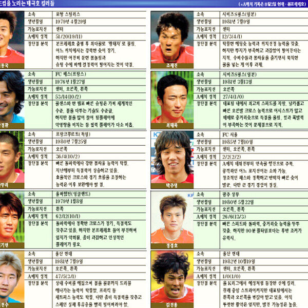 ‘안정환, 설기현도 탈락할 수 있다.’ 바야흐로 최고 골잡이들의 전쟁이 도래하고 있다. 2006년 독일월드컵 본선 최종 참가자 명단(엔트리)에 들기 위한 한국 킬러들의 9개월간의 사활을 건 경쟁이 그 시작을 알리고 있는 것이다.6회…