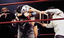 살과 살이 맞부딪치는 둔탁한 소리, 이글거리는 불꽃, 화려한 조명과 귀청이 떨어질 듯한 함성들. 3월21일 오후 7시 서울 잠실 실내체육관은 프로레슬링의 열기에 휩싸여 있었다. 1000여명의 관중들은 선수의 한 동작 한 동작에 열광…