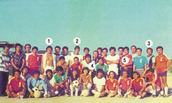 1977년 8월 서울 강남구 도곡동 주공아파트에 살 때다. 당시 조기축구회 활동을 열심히 하면서 다른 조기축구회와도 경기를 자주 했다. 이 사진도 도곡초등학교에서 연예인 축구단과 경기를 한 뒤 기념 촬영한 것이다. 승부가 어떻게 났…