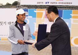 “한국이 가장 어려울 때, 또 가장 기쁜 순간에 나는 한국에 있었다. 나는 한국을, 한국 사람을 내 가족처럼 느낀다.”10월5일 열린 ‘외국인 한글 글짓기 대회’에서 으뜸상을 받은 방글라데시인 카엘 레벤씨(31·사진 왼쪽)의 수필 …