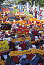 10월15일, 국회 문화관광위원회 국정감사가 진행 중인 제주도청 앞. 빨간 조끼에 노란 수건을 두른 1000여명의 시위대가 몰려들었다. ‘슬금슬금 신규 카지노 허가, 아슬아슬 제주 카지노 생존’. ‘무책임한 정부 대책, 제주 카지노…