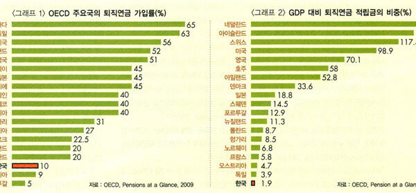 2010년 10월 말 현재 우리나라 퇴직연금 적립액은 20조9323억 원에 이른다. 5인 이상 사업장의 16.8%가 퇴직연금제도에 가입한 것으로 나타나는 등 적립금 규모 및 가입률에서 뚜렷한 증가추이를 보인다. 그럼에도 일찍이 퇴직…
