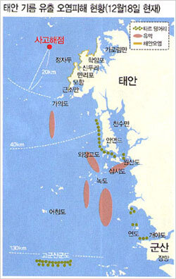 잔뜩 찌푸린 하늘, 기름 범벅의 검은 바다, 검은 모래, 검은 자갈, 검은 갈대….세상은 온통 검었다. 12월15일 오전 10시30분 충남 태안군 원북면 신두리 갯벌. 칼바람이 몰아치는 이 검은 바닷가에 가슴이 뜨거운 2700여 자…
