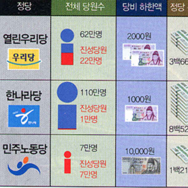 당비를 내는 당원이라는 뜻을 가진 ‘진성당원’이라는 말의 ‘저작권’은 민주노동당(이하 민노당)이 갖고 있다. 진성당원은 민노당이 2000년 창당 때 당원들의 소액 당비로 당을 운영하겠다면서 꺼내든 조어다. 민노당 천영세 원내대표는 …