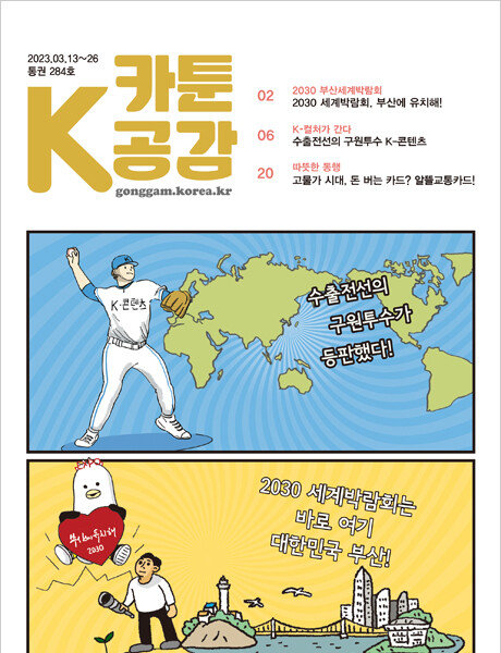 주요 정책을 만화로 재미있게 풀어내는 격주간 정책만화잡지 ‘카툰K-공감’ 284호(2023.3.13~26)가 발간됐다. 이번 호는 3월 2일부터 29일까지 4주간 진행되는 우리 농산물 할인 지원 정책을 자세하게 안내한다.또 인류 문…