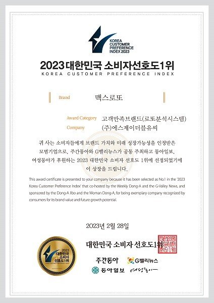 맥스로또가 ‘2023 대한민국 소비자선호도 1위’ 고객만족브랜드(로또분석시스템) 부문을 수상했다. ‘2023 대한민국 소비자선호도 1위’는 공정한 조사를 통해 검증된 기업과 제품, 브랜드를 발굴해 시상함으로써 소비자에게 검증된 서비…