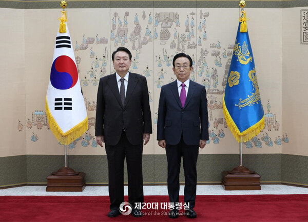 “한반도 긴장이 높아지고 국제 정세가 불안정한 시기에 평화통일을 준비하는 소임을 맡게 돼 영광스러우면서도 한편으로 무거운 책임감을 느낍니다.”윤석열 정부 첫 민주평화통일자문회의(민주평통) 수석부의장으로 임명된 김관용 신임 수석부의장…