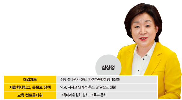 현재 문재인, 안철수, 유승민, 심상정 후보는 입시정책의 큰 방향을 밝힌 반면, 도지사직 사퇴 문제로 상대적으로 늦게 선거전에 뛰어든 홍준표 후보는 관련 공약을 내지 않았다. 지금까지 드러난 것을 놓고 보면 네 후보의 입시 관련 의견은 대동소이하다. 대입제도 간소화, 대입 선발 과정에서 학교생활기록부(학생부) 영향력 확대, 자율형사립고(자사고)와 외국어고 폐지 또는 축소 등에 대체적 공감대가 형성된 상태다.